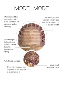 Model Mode by Raquel Welch is a heat friendly synthetic wig from the Signature Collection. The long hair has luscious barrel curls for a runway-ready hairstyle. The back is lightly layered for added lift and movement. The full monofilament top allows for multi-directional styling and parting versatility.